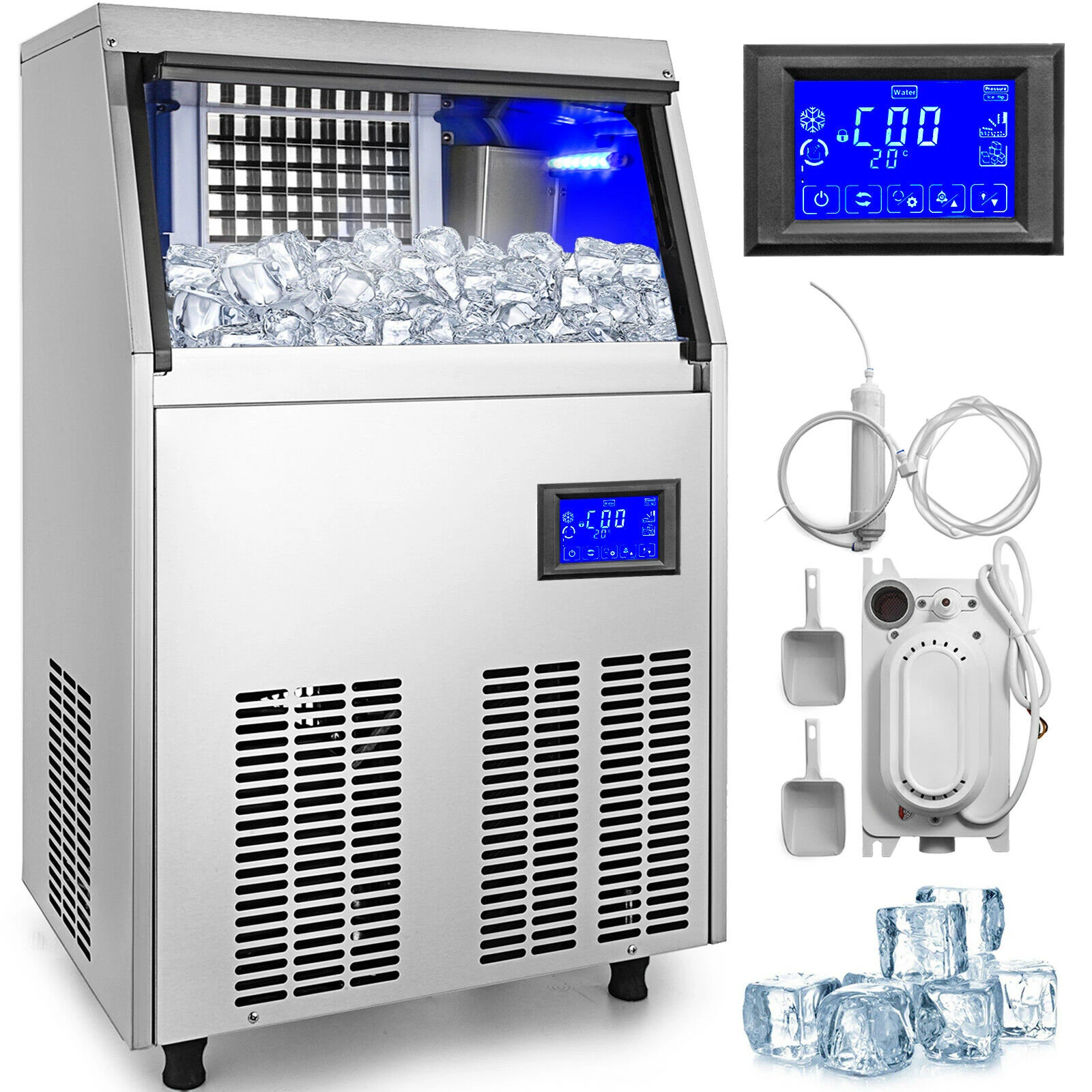 Vevor 110v Commercial Ice Maker 120 130lbs 24h With 33lbs Bin And Electric Water Drain Pump Clear Cube Stainless Steel Construction Auto Operation Vevor Us